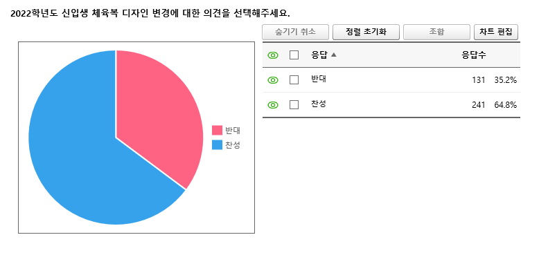 2022학년도 신입생 체육복 디자인 변경에 대한 설문조사 결과