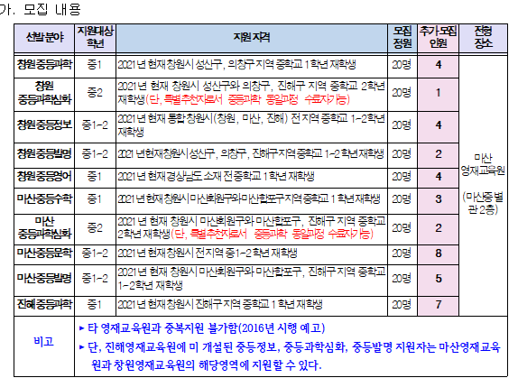 (요강) 2021. 창원교육지원청영재교육원 영재교육대상자 추가모집(공고용).hwp